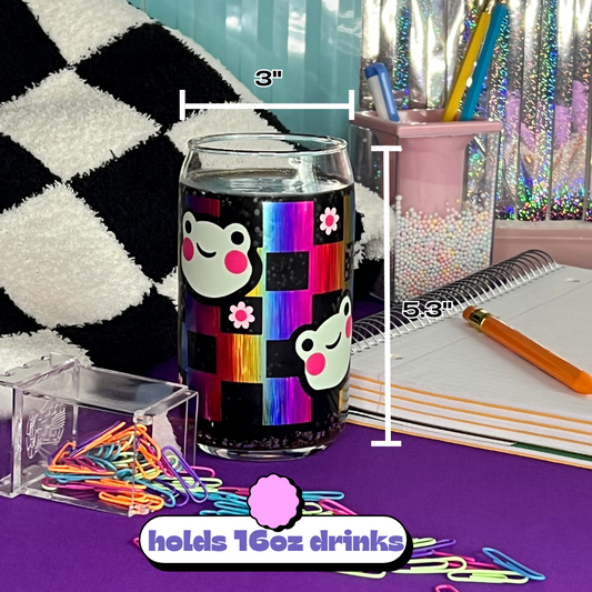 Rainbow Checkered Frog Glass